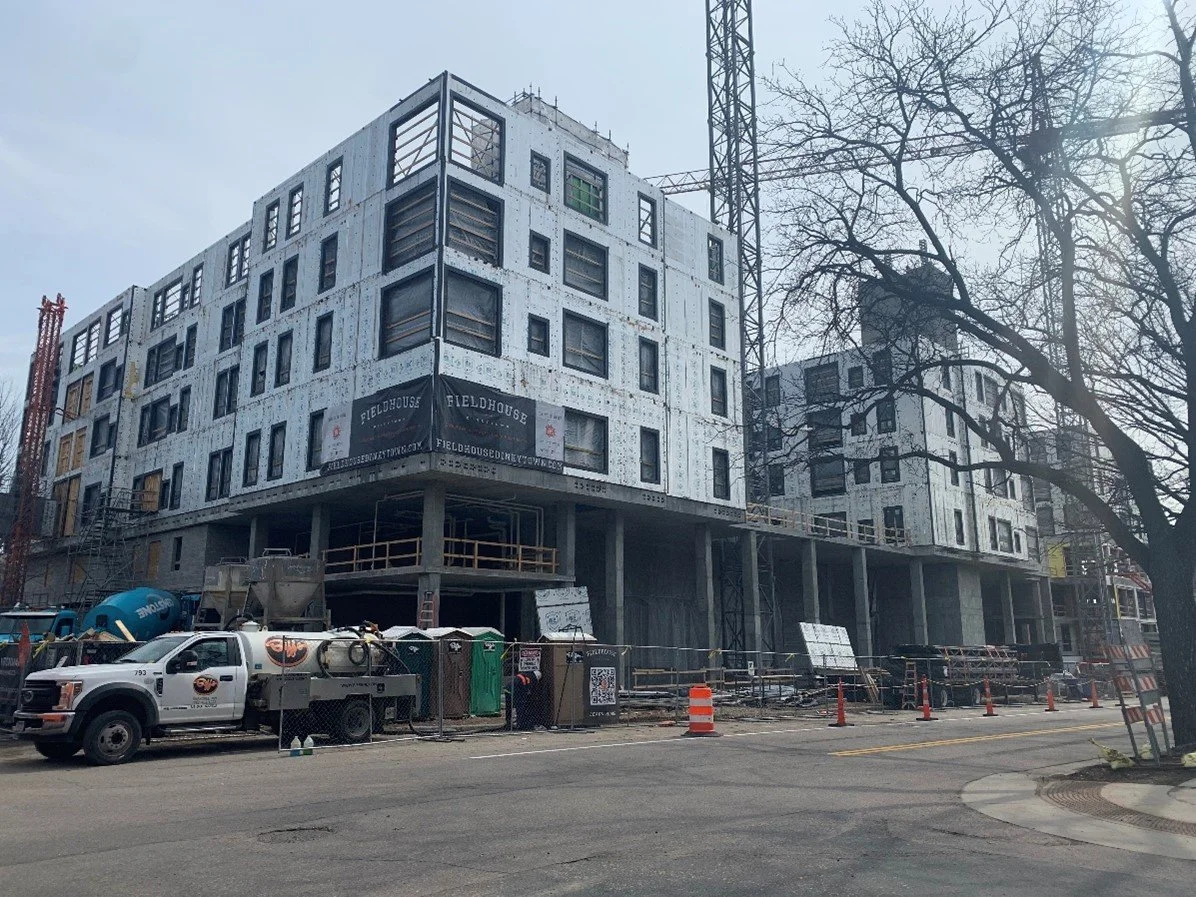The architect on this project is Cuningham Group Architecture, Inc. - Minneapolis used our ECOMAXci® Wall Solution over the entire building envelope and will include 3 different claddings (masonry, metal façade, cement board) throughout the exterior of the building. Eisen Panel Group is providing all the wall panels for this 12-story building with DensGlass sheathing with 2.5” ECOMAXci® Wall Solution covering. Working with IronMark Building Co. on the site has been outstanding.
